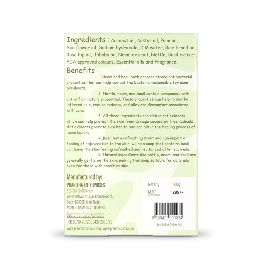 Anti-Acne Soap is a specially formulated cleansing bar designed to help manage acne-prone and oily skin. Crafted with skin-purifying ingredients such as herbal extracts, natural clays, or essential oils (depending on formulation), this soap helps remove excess oil, impurities, and buildup that can contribute to breakouts.